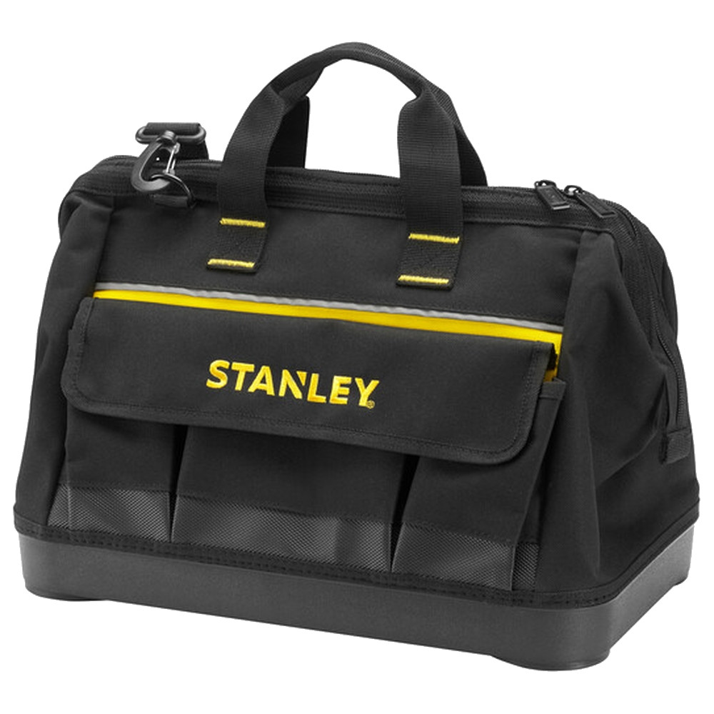 Сумка Basic Stanley Open Mouth 1-96-183 - служит для хранения и транспортировки ручного инструмента. Изготовлена из высококачественного материала и отличается хорошими прочностными характеристиками. Имеет одно отделение и много различных карманов, где удобно размещаются все необходимые инструменты и аксессуары. Сумку легко и удобно переносить с помощью прочного плечевого ремня. Вместительная и функциональная сумка - это отличный помощник для профессионала или домашнего мастера, позволяет аккуратно и компактно расположить инструменты, чтобы всегда держать их под рукой и не тратить время на поиски нужного предмета. Застегивается на молнию. Имеет водонепроницаемое пластмассовое дно.