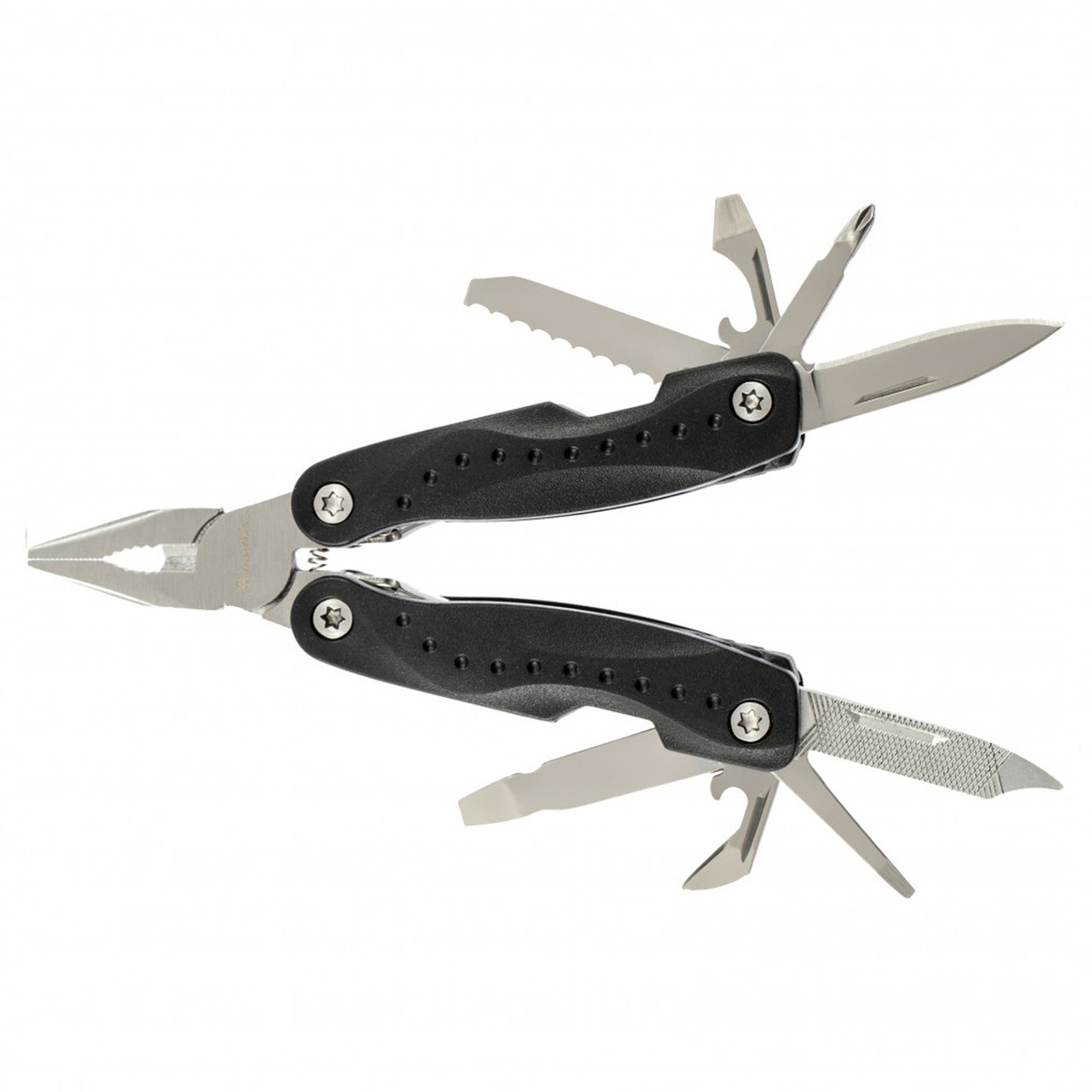 Трансформер MATRIX 12 функций с авторазжимом 105мм 17620 - мультитул длиной 105 мм с 12 функциями и авторазжимом, поставляется с чехлом. В него входят нож и пила для разрезания картона и других материалов, длинногубцы с захватом для полукруглых предметов и кусачками для перекусывания мягкой проволоки, отвертки для работы с резьбовыми соединениями, а также открывалки для открывания бутылок и консервных банок, пилка для ногтей. Инструмент можно использовать в гараже, также он пригодится дома, на даче, в походе и поездке, на охоте или рыбалке.