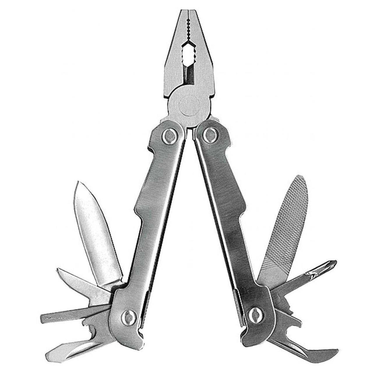 Пассатижи-трансформер Hobbi 13 в 1 34-1-015 - корпус и лезвия изготовлены из нержавеющей стали, рабочие части из инструментальной стали. В комплект входят: плоскогубцы, кусачки, захват круглых предметов, крестовая отвертка, консервный нож, открывалка для бутылок, отвертки шлицевые – средняя и малая, пилка, шило, напильник, большой нож и т.д.
